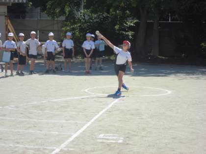 運動場では,「ソフトボール投げ」「立ち幅跳び」