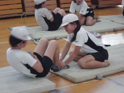 体育館では,「長座体前屈」「上体おこし」「反復横とび」