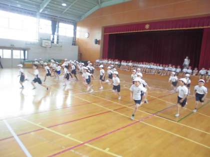 シャトル蘭をしている中で,友だちの回数を数えている子も,走り終わってしまった子も,まだ頑張って走っている友だちを応援する声があちこちで聞こえてきました。