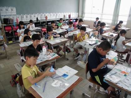 今日は,夢色ランプの完成に向けて頑張りました。出来上がった子から暗い場所に行ってランプをつけてみました。次は,全員のランプをつけて鑑賞したいと思います。