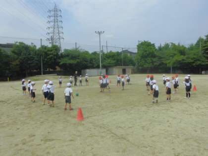 演劇鑑賞の準備のため,体育館が使えなかったので,学年でころがしドッジをしました。