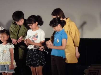 演劇鑑賞がありました。妖怪が出てくるお話だったので,劇が終わった時に「怖かった〜。」なんて声も聞こえました。休憩の後に効果音体験コーナーがあり,4年生からも1人代表として出て,カエルの鳴き声を体験しました。
