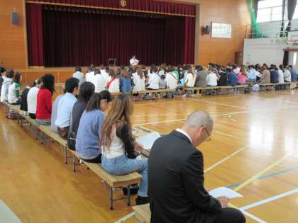 日曜参観の授業後,体育館でPTA総会が行われました。