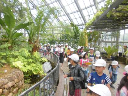 無事植物園に着き,まず向かったのは温室。そこでは,簡単な“指令”に基づいて,植物を探す活動に取り組みました。