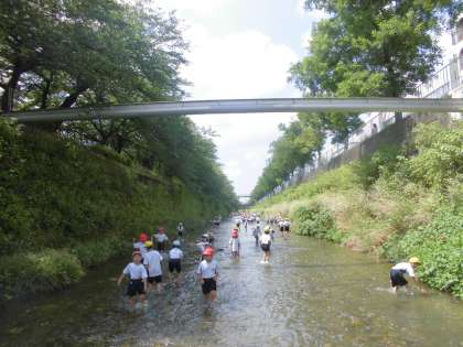 葛野の校区には,天神川という川があります。夏には鮎を放流してつかみ取りをしたりします。