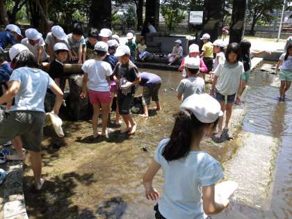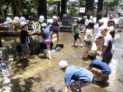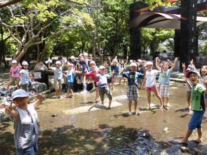 お弁当を食べた後、梅小路公園で水遊びをしました!今日はすごく暑かったので、良いリフレッシュになりました!