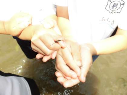 川に落ちているごみを拾ったり,川にいる生き物を観察したりしました。