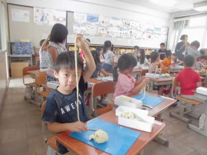 たくさん並べて虹を作ったり,わっかを作ってそれをつなげて鎖にしたり,くるくるまいて蛇を作ったり,子どもたちはとても楽しそうに活動していました。