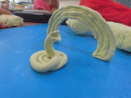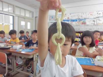 今回は,粘土をひも状にして,さまざまな形を作りました。