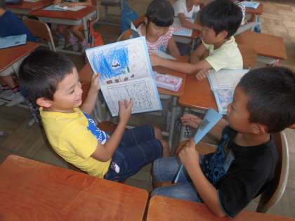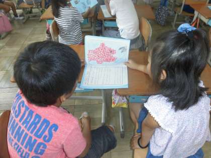 今日は,がんばって作った“かんそうレター”を友達と見せ合いました。