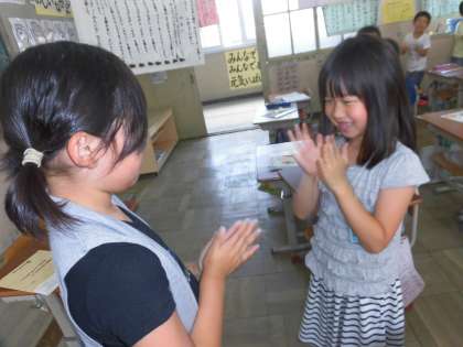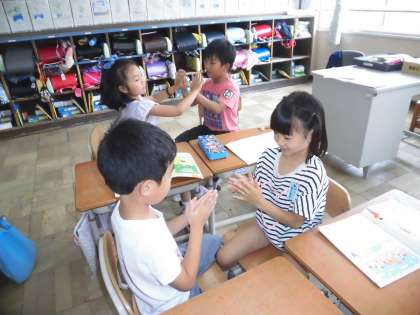 はじめは一人で手拍子をしながら,つぎは二人で両手を合わせながら,歌を歌いました。