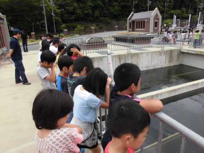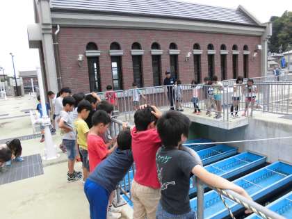 いよいよ施設の見学がスタートしました。見学が進むにつれて水がきれいになっていく様子が見られて,子どもたちのテンションもどんどん上がっていきました。