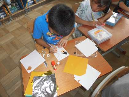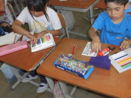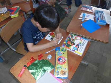 折り紙を使ったり,クーピーを使ったりして,自分の思いを絵手紙に表現していました。