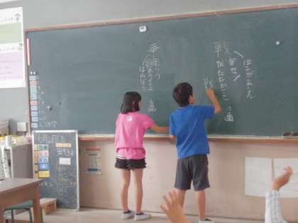 今日の漢字は「戦」と「争」でした。明日から国語で勉強する「一つの花」も戦争のお話です。くじで選ばれた二人,お疲れ様でした。