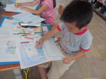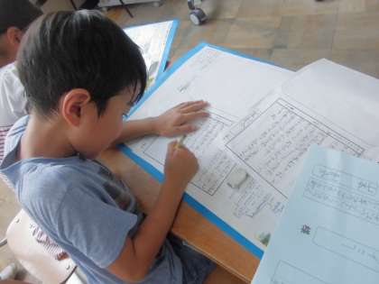 など,スイミーの気持ちに寄り添った言葉を書きまとめる子どもたちの姿はどこか真剣で,物語の世界を楽しんでいることが,とても伝わってきました。