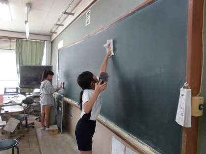 今日は,黒板の掃除と廊下のぞうきんがけの姿が目立っていました。黒板をてても綺麗に掃除してくれたので,5時間目に黒板に字を書くのがためらわれました。廊下のぞうきんがけは,中央の白線を何度もこすって元々の白さを取り戻そうと頑張ってくれていました。