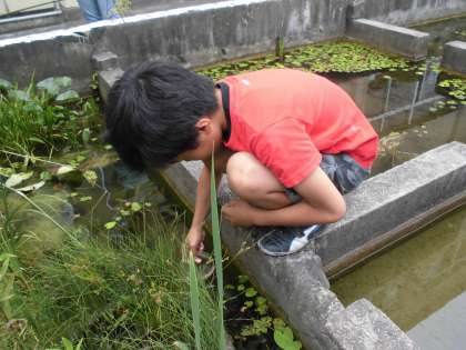 中庭にある池にはどんな生物がいるのか…