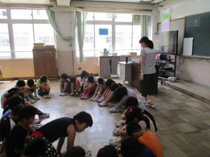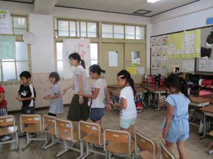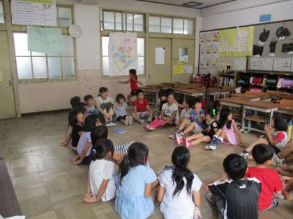 教育実習に来ていた先生がこの日が最終日だったので,一緒にハンカチ落としをして楽しみました。