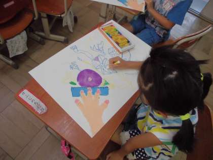 子ども達はアサガオをよーく見ながら一生懸命に色を塗っていました。