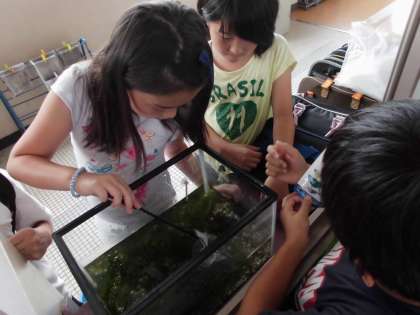 5年生のそれぞれのクラスにメダカがやってきて数日が経ちました。