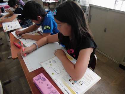 今日は,教科書にあるモデル文を見てオリジナルのポスターを書きました。
