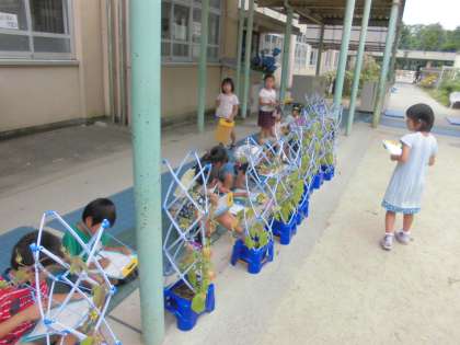 遅くなりましたが,生活の時間にあさがおの花の観察をしました。