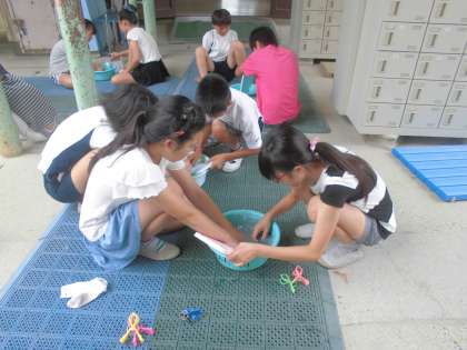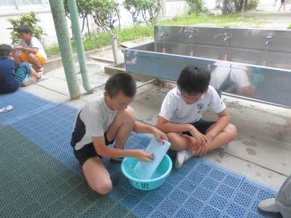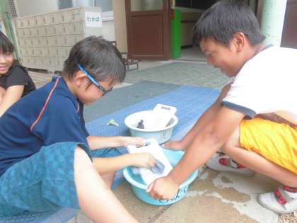 今日は3組の洗濯です。ごしごしとしっかりと洗いました。洗濯機で洗うよりも短い時間で洗えます。とてもきれいになりました!
