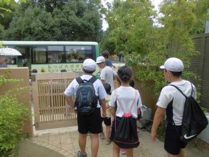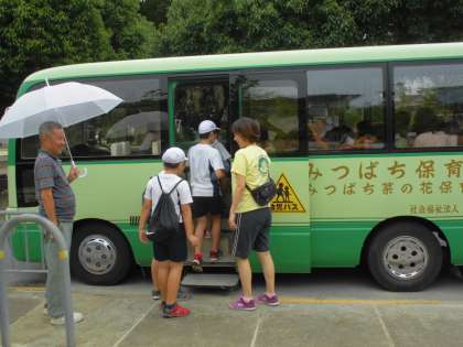 5歳児クラスは,自己紹介が終わると早速園バスに乗って,お出かけです。