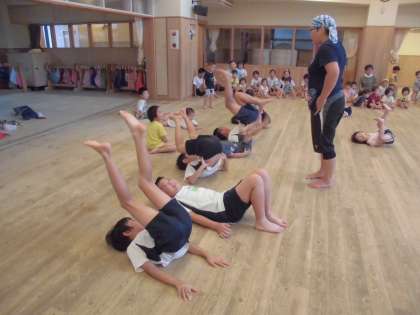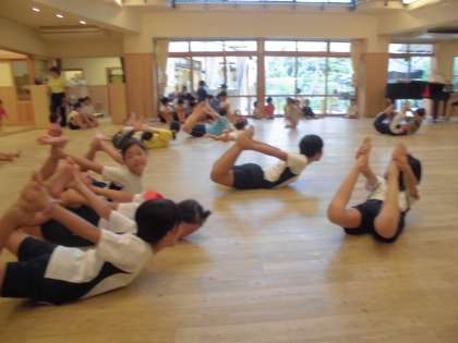 先生からの「小学生,負けてるよ〜!」の声に腰をぐっとそらしていました。