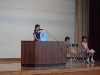 今日は葛野タイムは,2年生の感動体験作文の発表でした。2年生の作文のテーマは,「友だち」。友だちがいてよかったなと思ったことや,自分が大切にしている友だちとの思い出について,3人の学級代表が発表しました。発表の際は少し緊張した様子でしたが,一人一人が練習の成果を発揮してくれました。