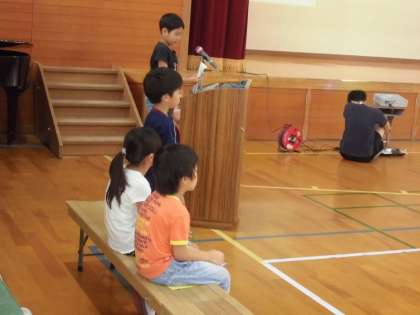 今回の葛野タイムは,2年生の子どもたちが,司会役と紹介役も務めました。何度も原稿を読み返しての本番。しっかりと,発表者の3人をサポートしてくれました。