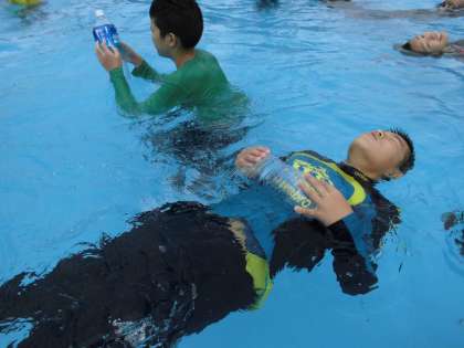 次はペットボトルを使って浮くかどうかをチャレンジしました。