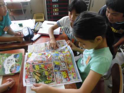 夏休み前最後の社会科の学習は広告を見ながらの学びでした。