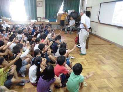 今日は「地球温暖化」について勉強しました。自然エネルギーって何かや,2100年の地球の温度の上昇などを映像にして説明してもらいました。夏休み中にはどんなエコライフチャレンジをしてくれるのか楽しみです。