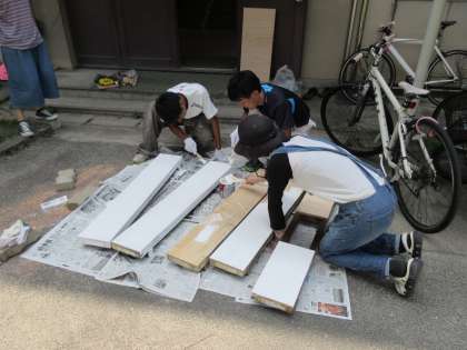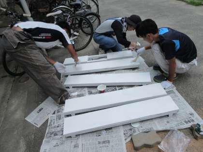 新しく屋根を作成した後はペンキ塗りです。暑い中,むらの無いよう丁寧に何度も何度も塗りました。