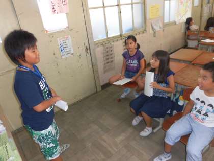 夏休み中に頑張って書いた絵日記を見せながら,夏休みの思い出を発表し合いました。