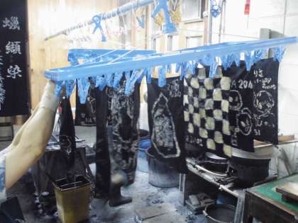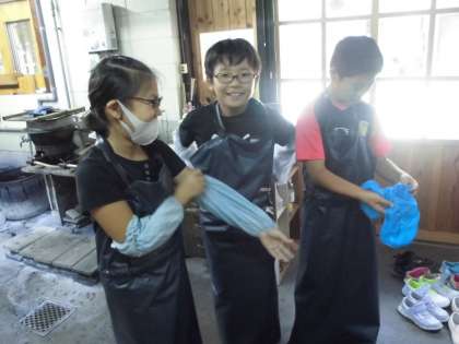 ロウを付けた絵が完成したら,長靴・エプロン姿に変身です!!