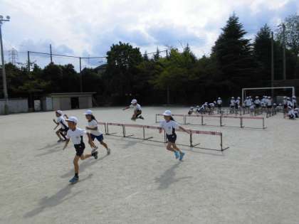 今日は初のバラエティ走の練習をしました。跳んで,跳んで,ドリブルしてゴールにダンク!本番では,手に汗握るレースをご期待ください。