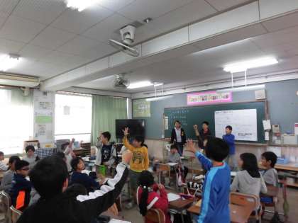 4年2組の教室では,リーダーたちが集まり,出発式の司会に言葉,