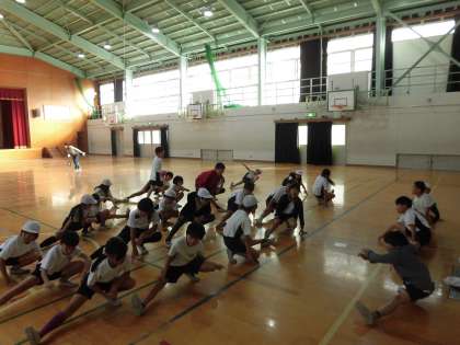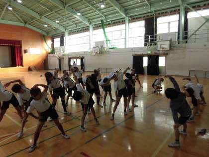 いつもよりしっかりめに体をあっため,ストレッチ♪