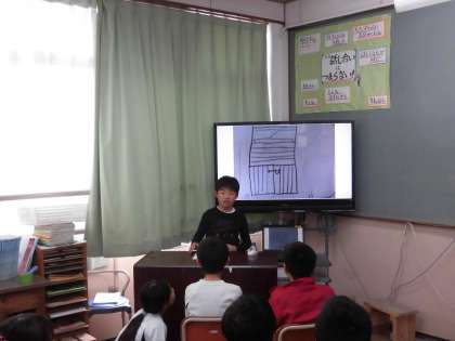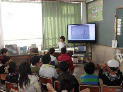 今回はテレビ画面を使って,みんなに発表。