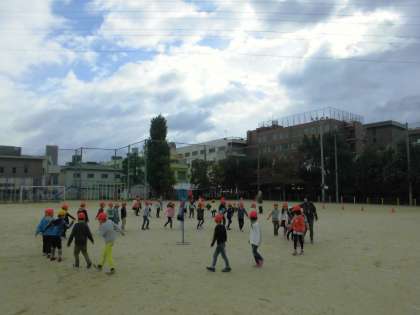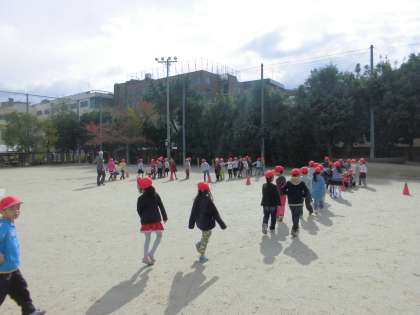1年生は玉入れのお手伝いをすることになっているので,今日は入退場の練習をしました。1か月ぶりに玉入れのかごを見て,運動会を懐かしんでいる子もいました。