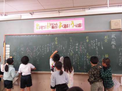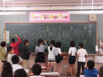 黒板に書けるうれしさのダブル効果で,「ぼくも,ぼくも」「わたしも,わたしも」
