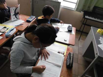 今日は,ごんぎつねを読んで,主人公の「ごん」の気持ちや行動が変わったところを考えました。駅ごと場人物の変化を読み取った経験はありますが,変化した要因となるを読み取りました。かなり難しかったようですが,悩みながら一生懸命読み取っていました。