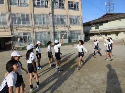 今日の体育では,縄跳びは縄跳びでも「大縄」をしました。今日は男子グループと女子グループに分かれて練習しました。授業の最後に何回連続で跳べるか数えました。今年度の大縄大会ではいい成績が残せることを期待しています。