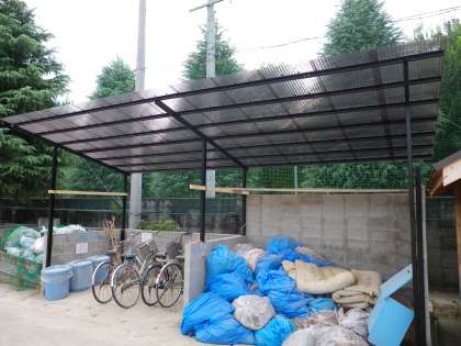 運動場にある自転車置場の屋根が老朽化し、強風が吹くとはがれて飛んでいく危険性がありました。このたび、京都市教育委員会から許可が出て新しい屋根に直して頂きました。子どもたちが安心をして安全に運動場で遊ぶことができるようになりました。