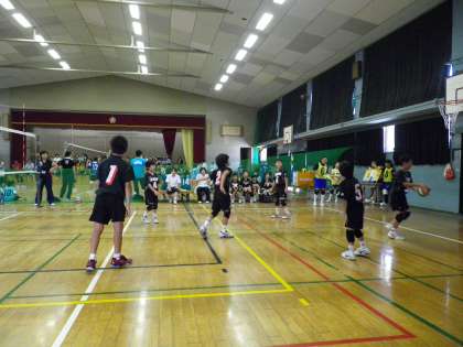 4日御室小学校と太秦小学校を会場として、右京支部バレーボール交流会が開かれました。暑い中、熱戦が繰り広げられ、葛野のチームも善戦していました。緊張した試合の中でも、サーブが5本も6本もきまり、サーブした本人が驚いてたり、女子チームからの応援に照れてしまう男子もいたりで何とも微笑ましかったです。コートの中でお互い声を掛け合い、励まし合いながら凛々しい態度で臨んでいる選手たちがとってもカッコいいなあと思います。