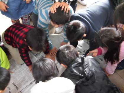 実際に石を教室に並べて,グループ分けをしました。