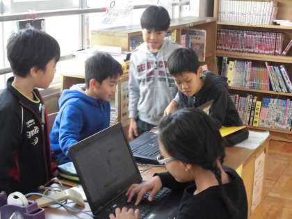 今日は,コンピューター室と図書室に分かれて北垣国道さんを調べました。図書室組はとっても意欲的に次々と本を出してはページをめくっていました。でも,出てくるのは難しい文字ばっかり,国語辞典で調べながらちょっとずつ理解を深めていきました。