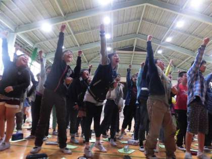 今日は,全員で集まって気合を入れました!